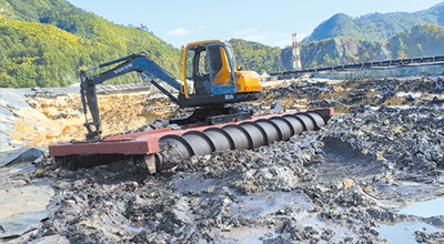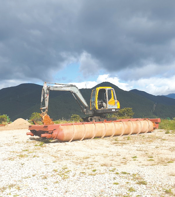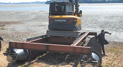 - 원통형 트랙으로 부력과 주행이 동시에 가능한 습지용 굴삭기
